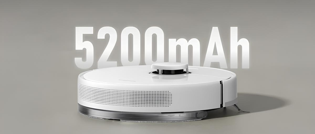 Аккумулятор ёмкостью 5200 мАч обеспечивает до 300 минут уборки в тихом режиме — этого хватает на площадь до 270 м². Когда заряд снижается, пылесос сам возвращается на базу, подзаряжается и продолжает с того места, где остановился. Уровень шума низкий, так что Dreame F10 можно запускать даже вечером, не мешая отдыху.