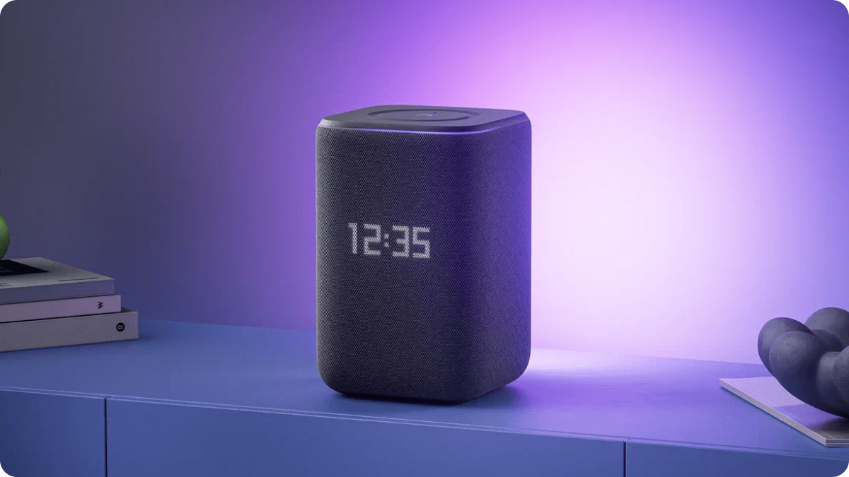 Для питания используется адаптер (через USB-C/PD), а встроенная подсветка и дисплей добавляют визуальную атмосферу: свет и информация отображаются прямо на корпусе, что повышает комфорт в домашней обстановке. Сенсорная панель помогает управлять колонкой вручную, если голос недоступен. Устройство рассчитано на питание от сети — автономный аккумулятор не предусмотрен.