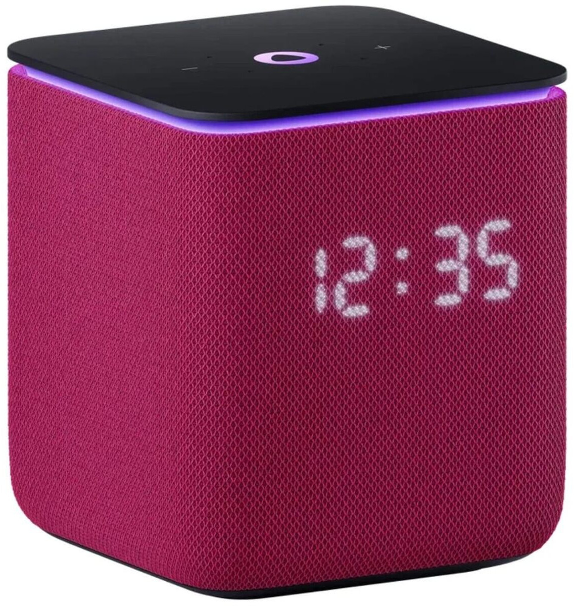 Приятный корпус с тканевой отделкой, доступный в разных расцветках текстильной части, не только придает колонке стильный внешний вид, но и создает приятные тактильные ощущения. Он также защищает динамики и слегка смягчает звук, а встроенный экран эффектно светится прямо на текстильной стороне.